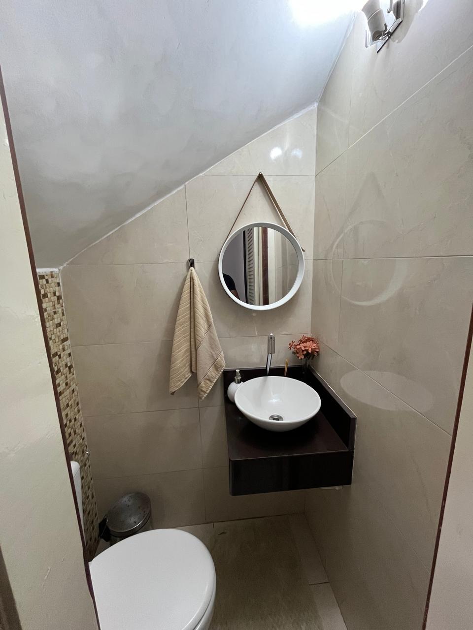 3/4 sendo 2 suítes, norte/sul. Sala, cozinha integrada, lavabo, banheiro social no pavimento superior.